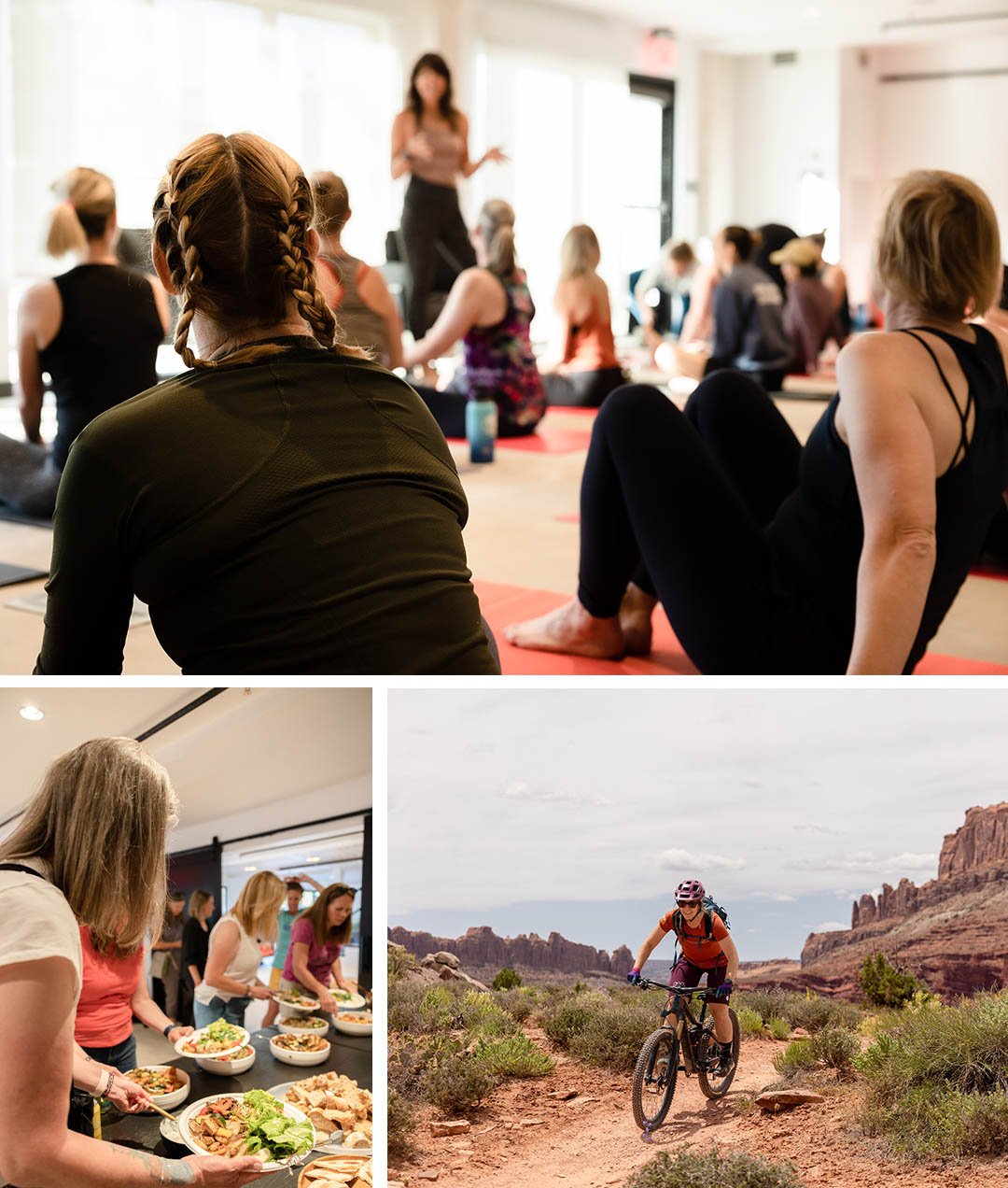 Each day of our retreats is thoughtfully planned. We’ll kick off the retreat with a meet and greet on Thursday evening, followed by three days of mountain biking through breathtaking scenery with elite instructors, morning yoga, and delightful evening activities each night. We split riders up into small riding groups sorted by skill level to ensure that everyone has just the right amount of challenge and the most fun possible.